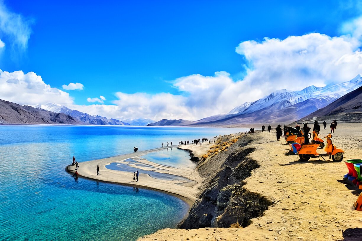 Pangong Lake: Witness the stunning Pangong Lake, famous for its changing colors. It is the highest saltwater lake in the world, shared between India and China.